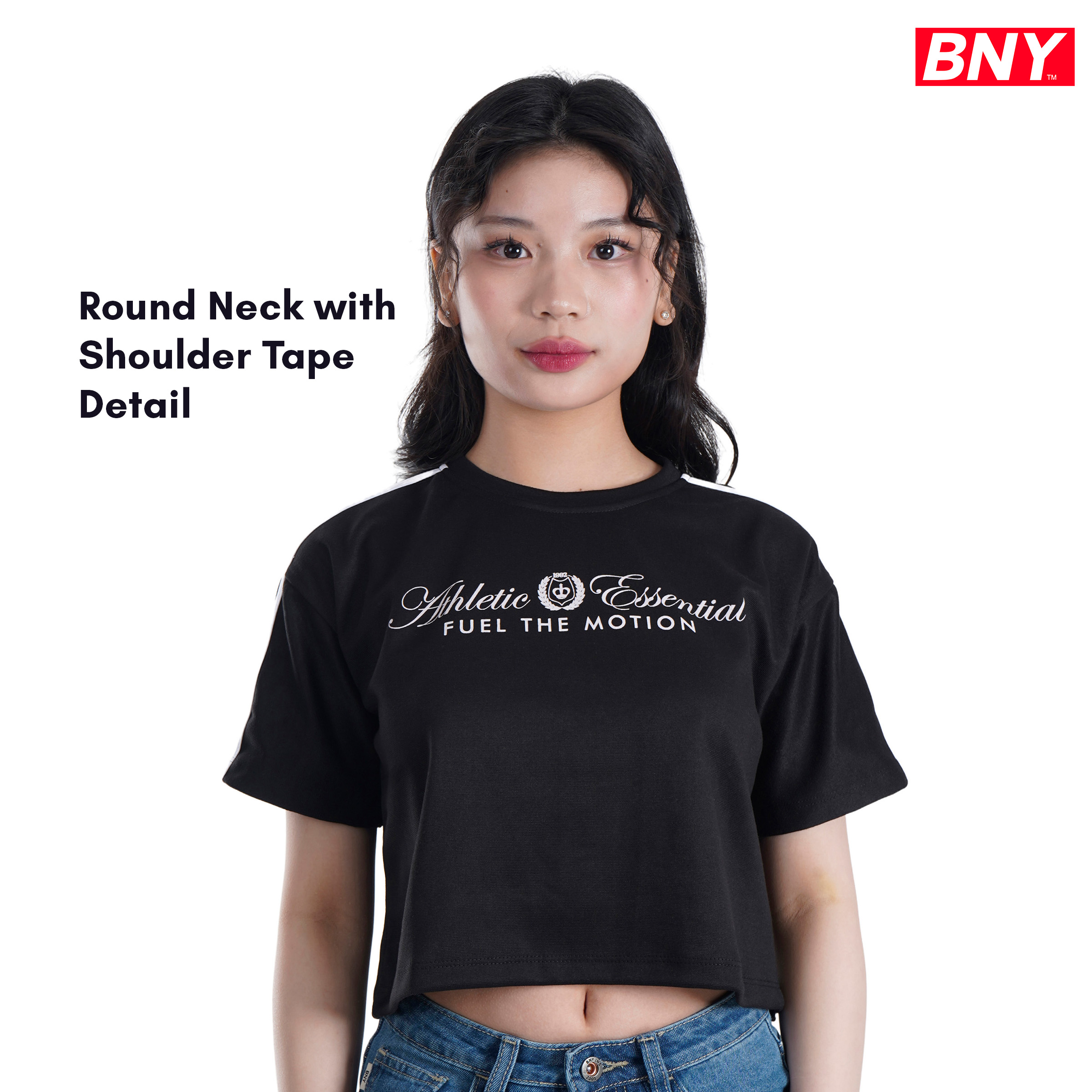 LADIES' ROUND NECK WITH SHOULDER TAPE DETAILS (221)