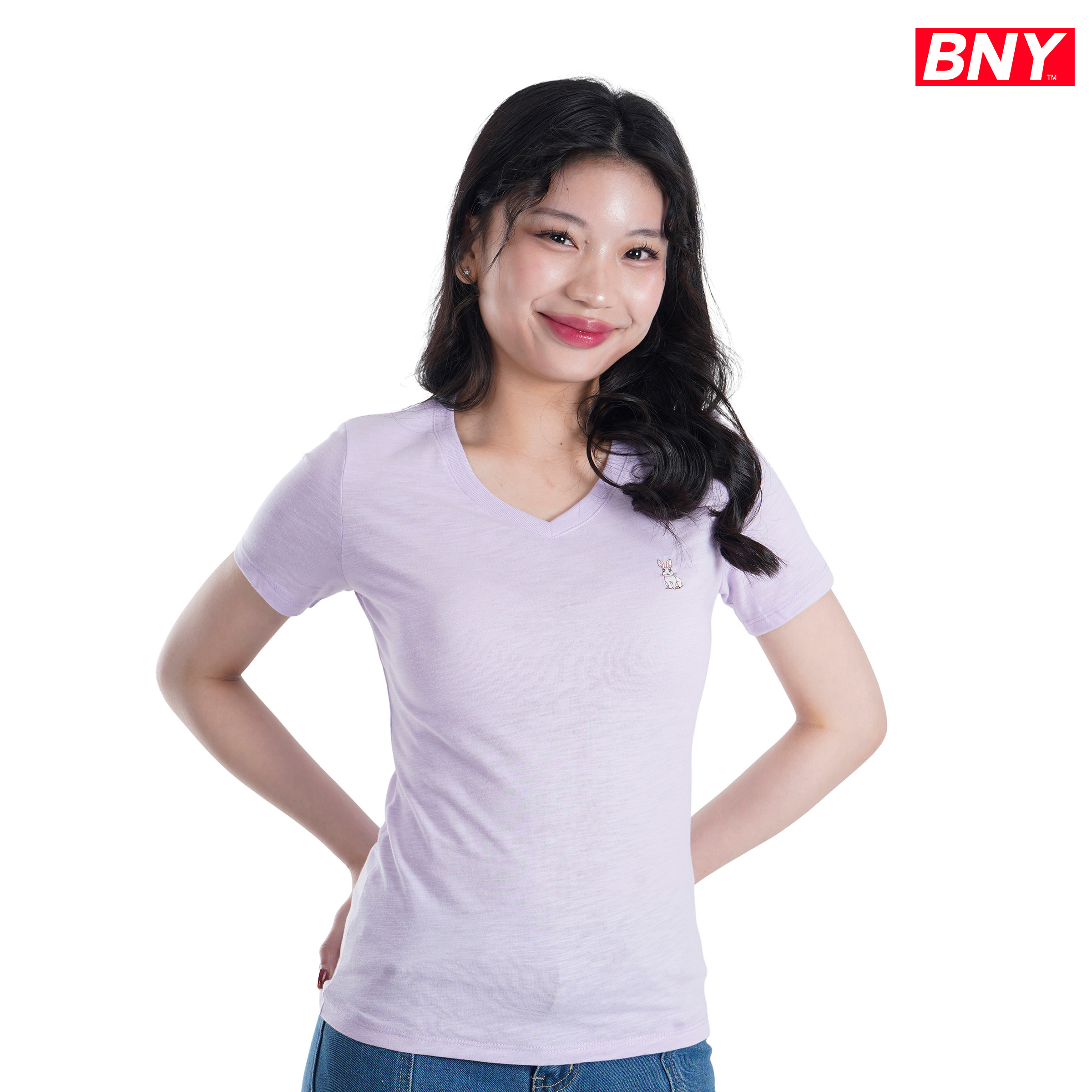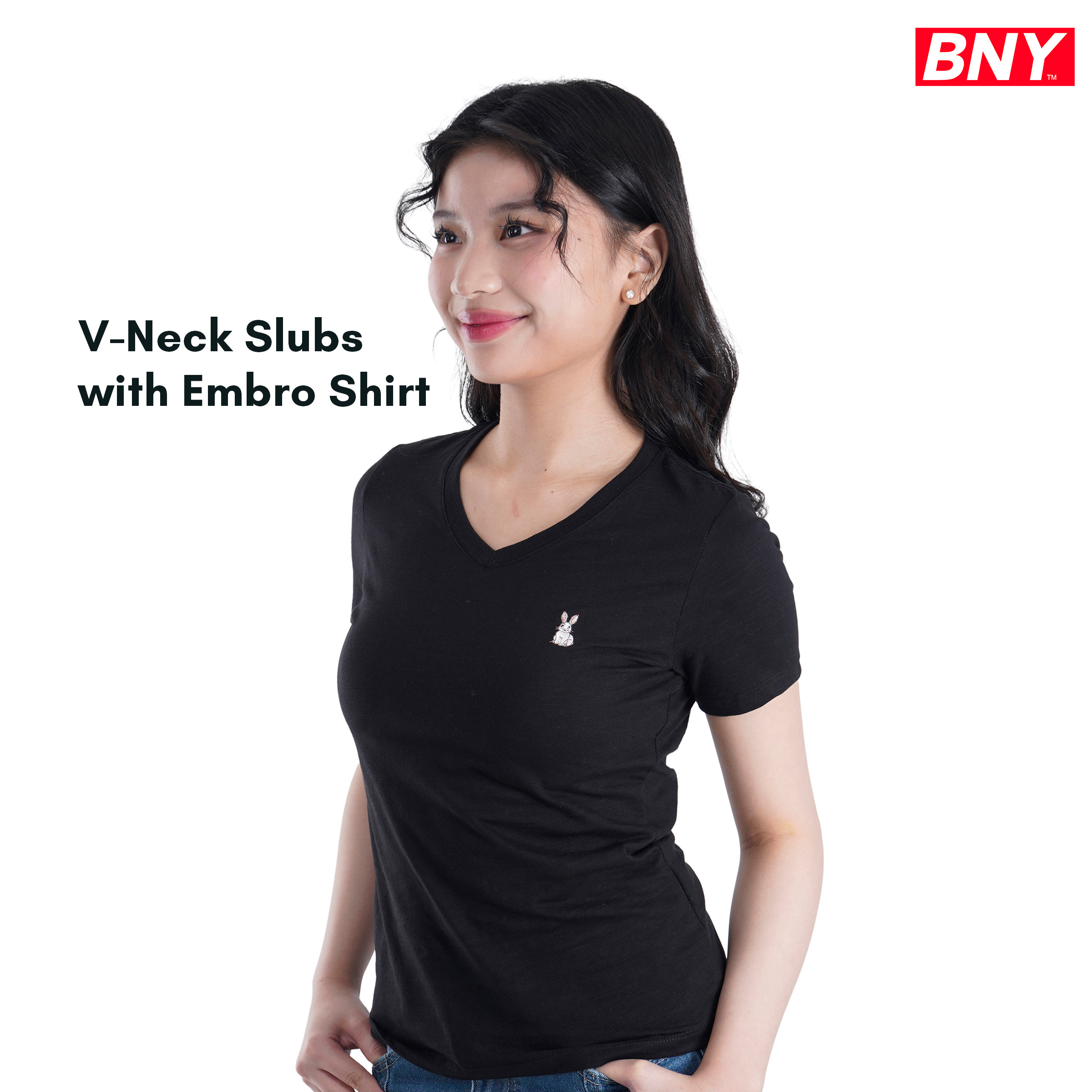LADIES' V-NECK SLUBS WITH EMBRO (242)