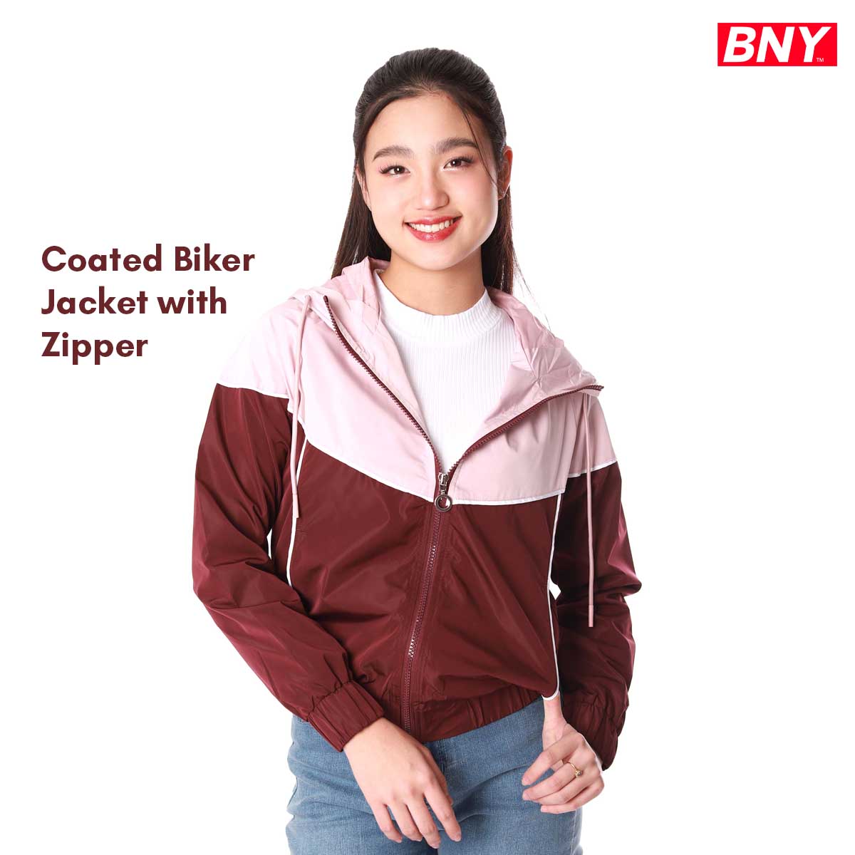 LADIES' COATED BIKER JACKET WITH ZIPPER